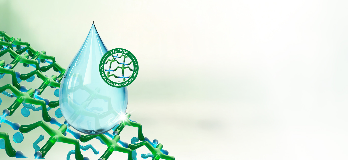 ГП-Гуар особый натуральный компонент в основе технологии Систейн обеспечивает увлажнение в 2 раза эффективнее, чем обычные капли, содержащие только гиалуроновую кислоту2